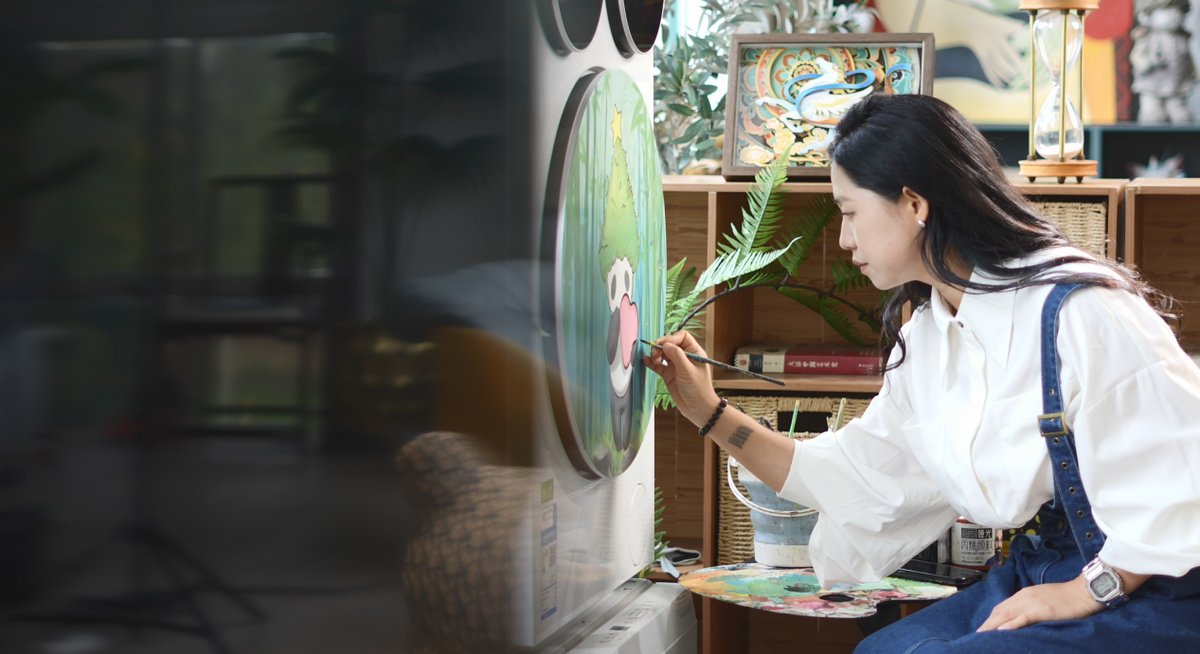 更有趣的是,冀诗睿还为洗衣机DIY了专属“皮肤”——一只可爱的小熊猫。现在每天看着它不仅治愈了工作疲惫,也为她的工作带来了无限创意。