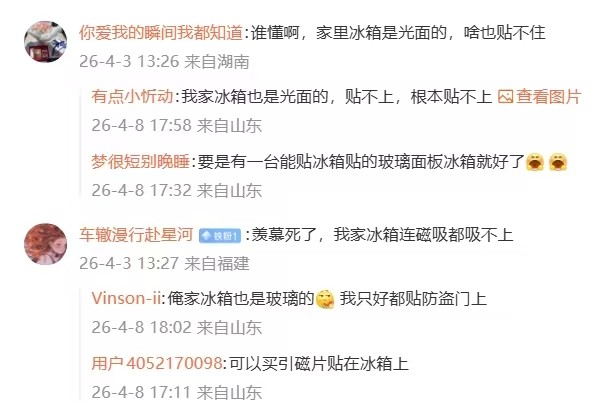 近年来,冰箱贴已从简单的装饰品,逐渐演变为承载情感与记忆的载体。文创类、旅行主题以及DIY冰箱贴持续走红,许多人习惯用它记录旅途风景、展示家庭趣味。用户期待冰箱不仅是厨房中的颜值担当,更能成为展示生活印记的个性空间。正因如此,越来越多年轻用户开始呼吁“让冰箱贴回归冰箱”。