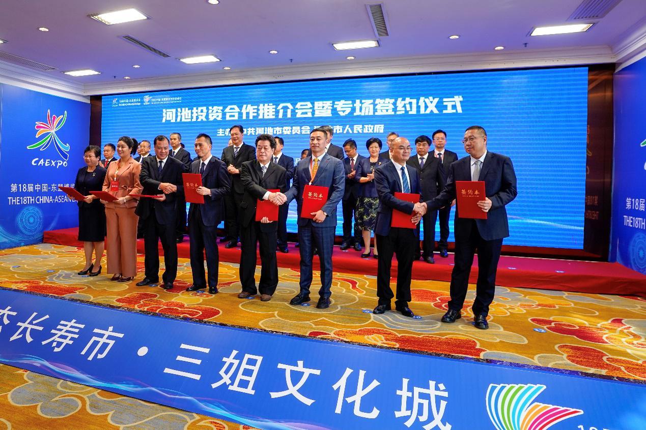 9月11日下午,第18届中国—东盟博览会和商务与投资峰会河池投资合作推介会暨专场签约仪式在南宁市金紫荆国际大酒店举行。河池市市委书记秦春成出席本次活动并致辞。