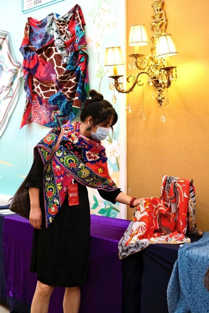 会场上,同益新展示了花纹绚丽、式样丰富的精美河池丝绸。方巾、披肩、衣服、蚕丝被等丝绸产品色彩秀丽、织造精细、质地顺滑,展现了我国丝绸文化的绚美多彩。