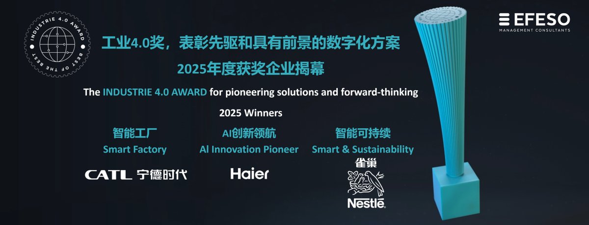 2月2日,EFESO工业4.0中国奖获奖名单正式公布。海尔净水互联工厂与水生态互联工厂再添殊荣,成功斩获AI创新领航奖,成为行业唯一上榜且2座工厂同时获此奖项的企业。